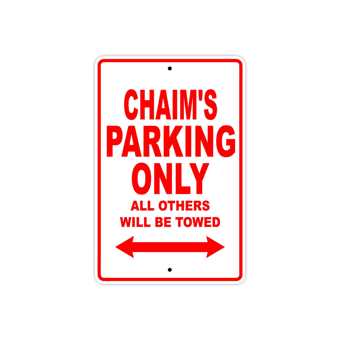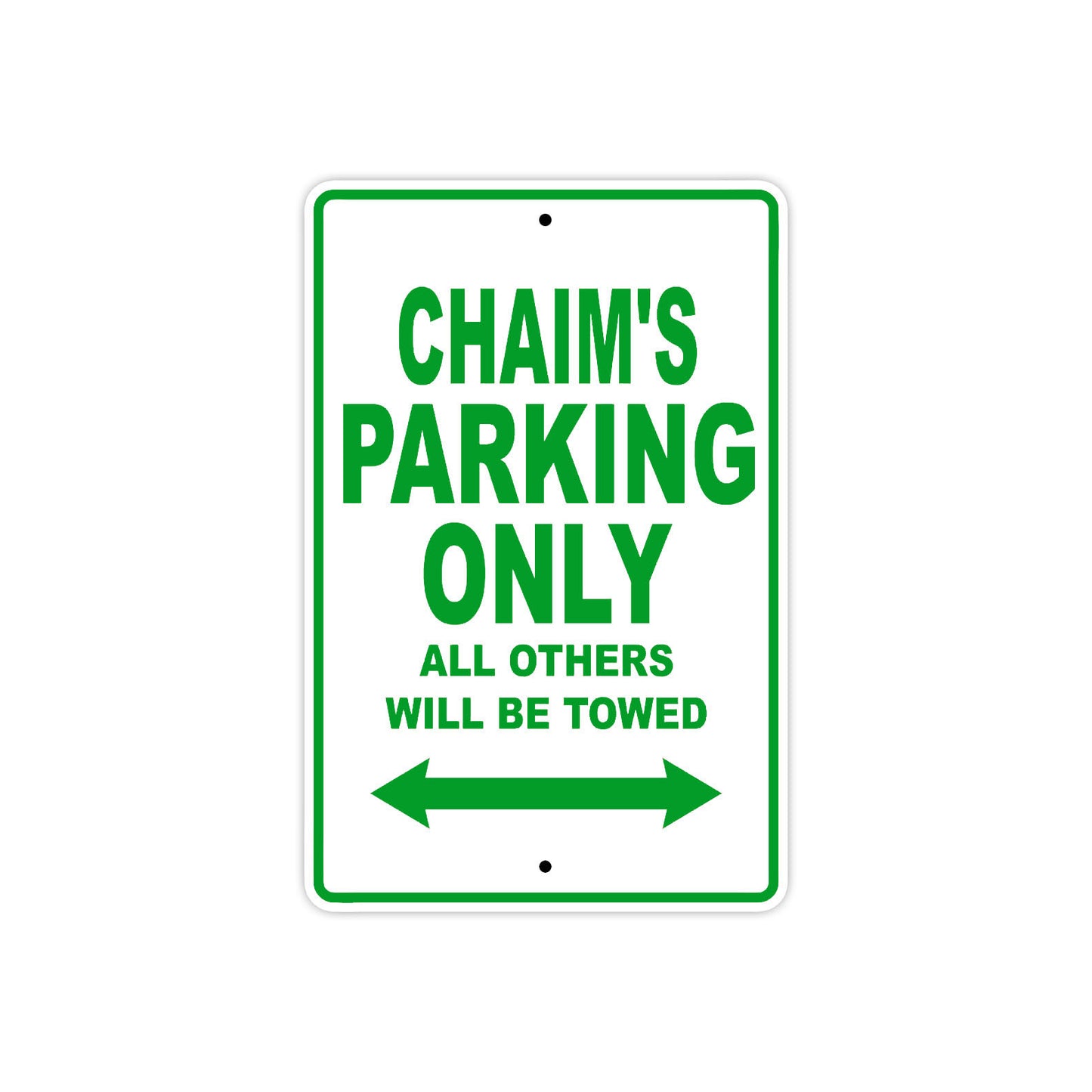 Chaim's Name Parking Only All Others Will Be Towed Aluminum Metal Sign