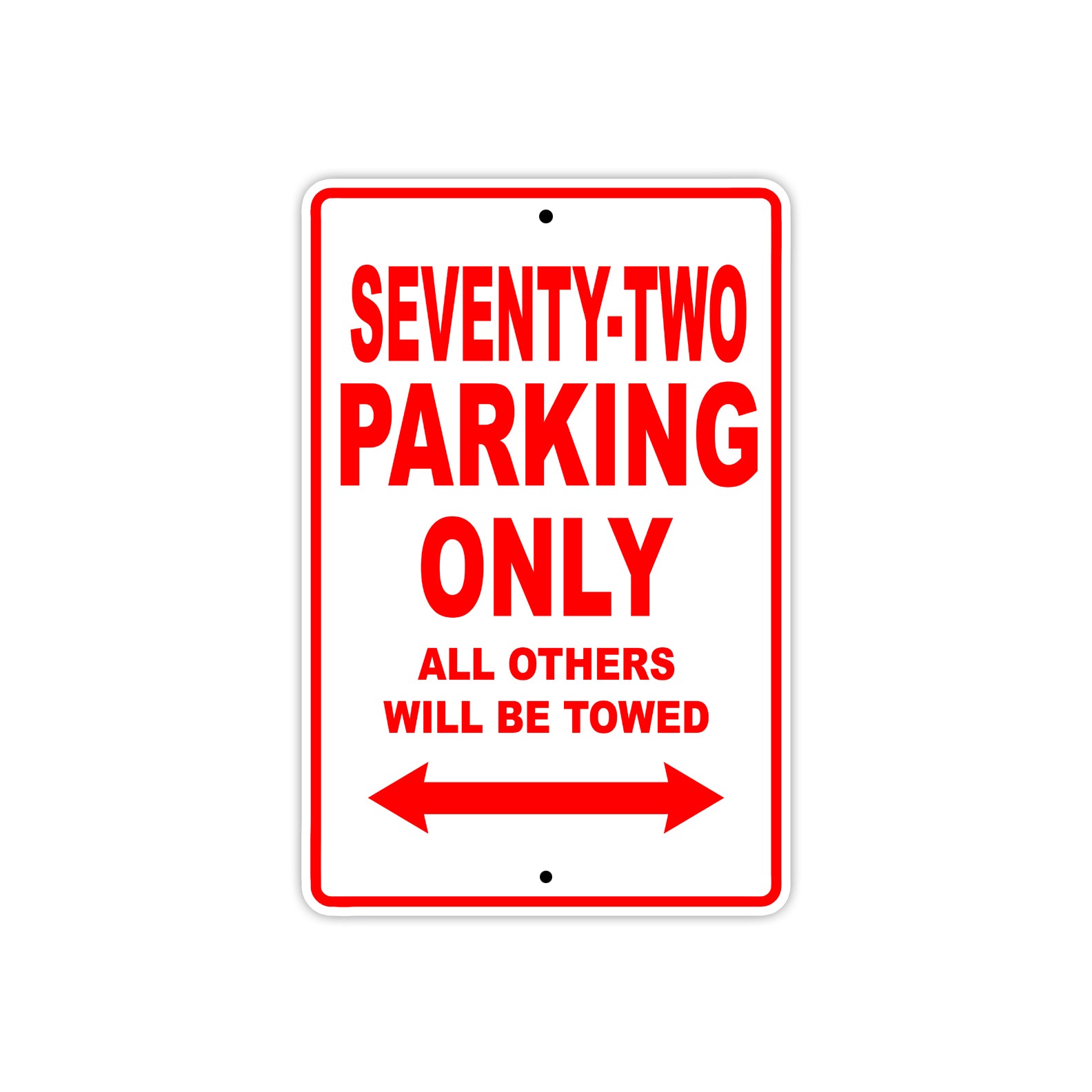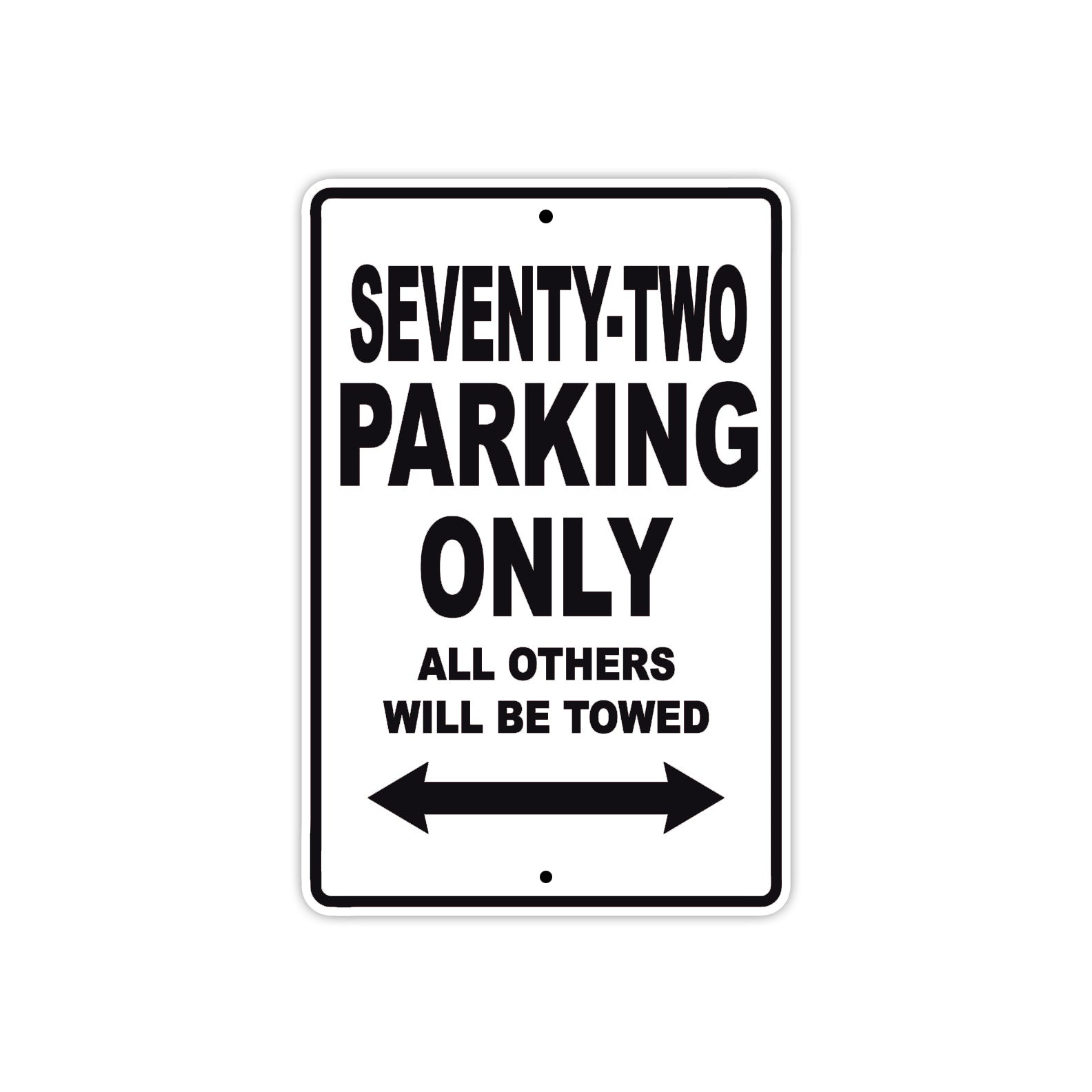 Seventy-Two Parking Only All Others Will Be Towed Aluminum Metal Sign